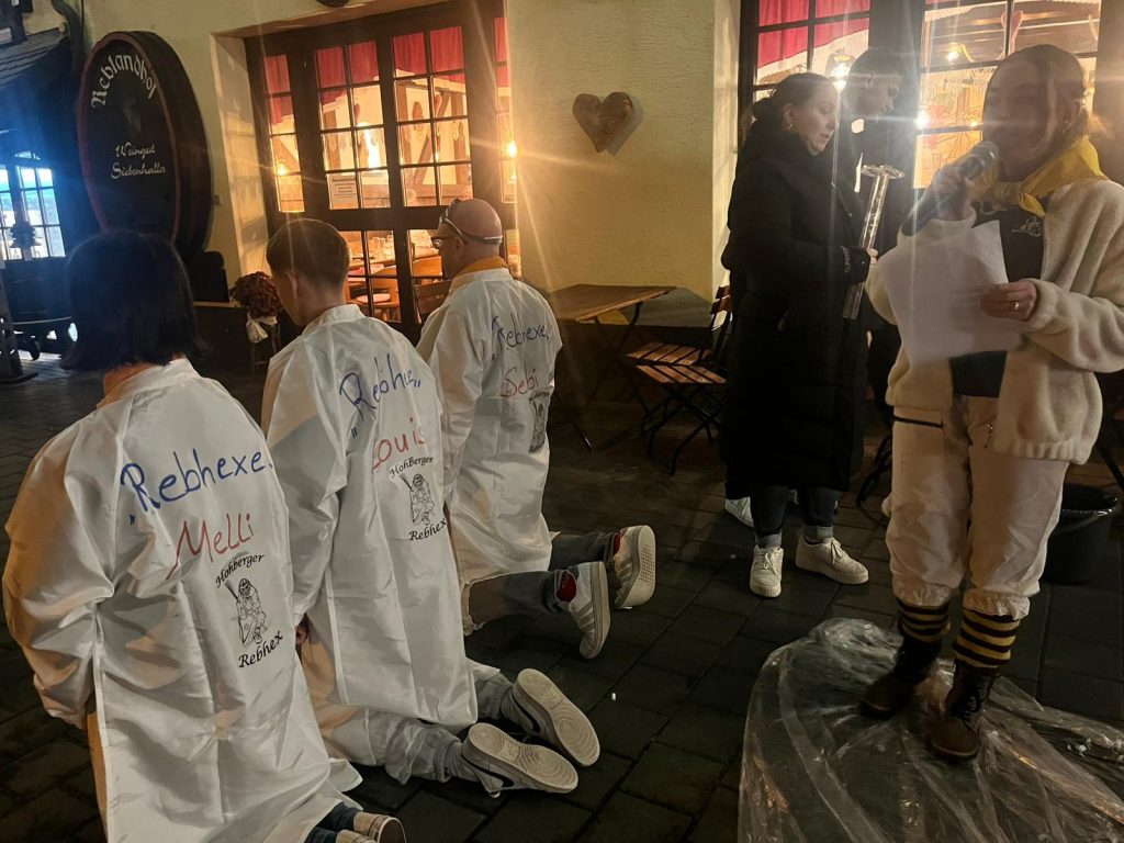 Der Vorstand neben seinen Narrenräten laden zum Auftakt in die 5. Jahreszeit in den Reblandhof in Kippenhausen ein. Zu Gast sind unsere Patenzünfte und unsere Ehrenmitglieder. Unsere Schalmeien stimmen uns in die bevorstehende „närrische Zeit“ ein. Traditionell werden unsere neuen Mitglieder getauft.